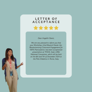 Angeliki Daviti will be presenting a workshop designed to boost student engagement and enthusiasm.