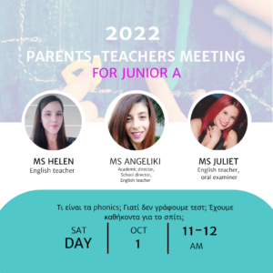 Οι γονείς των μαθητών μας θα ενημερωθούν για το εκπαιδευτικό μας πρόγραμμα.